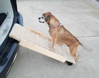 It has a flat supporting surface that is tilted at an angle and is used to help dogs into vehicles or other hard to reach areas. We also have indoor pet steps and stairs that allow easy access to high beds couches and other furniture. Additional fees may apply and will be noted on the product detail page andor shopping cart.