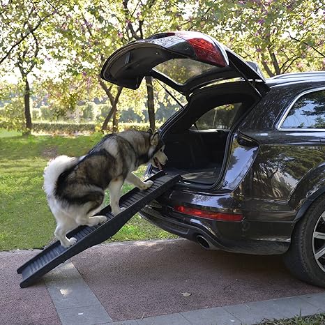 Keeping around a set of steps or a dog ramp can make all the difference to your faithful companion. Bonnlo heavy duty aluminum dog car ramp for large dogs up to 250lbs portable folding skidproof pet ramp for carsuvtruck 15inch wide. The extra wide ramp is carpeted and reflective which includes side placed reflectors for dogs with poor vision and nighttime use.
