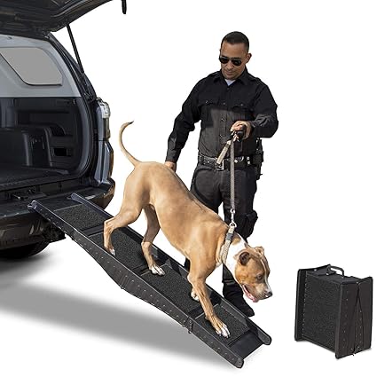 Petsafe happy ride folding dog ramp portable lightweight dog and cat ramp great for cars trucks and suvs durable pet ramp supports up to 150 lb side rails and high traction surface design. Zeny bi fold pet ramp for dog and cat ramp great for trunk back seat ladder step car suv. Dogs that will always have your back.