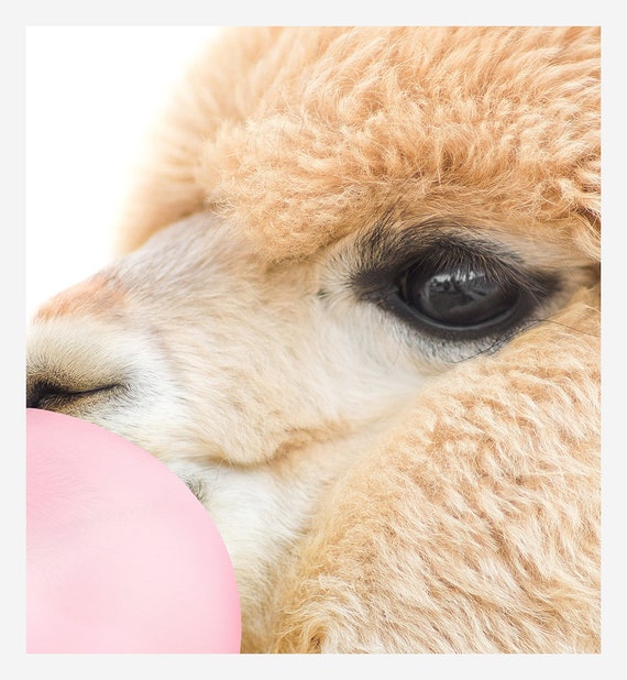 Llama Print Bubble Gum Wall Art Baby Alpaca Printable Cute Animal Photography Quirky Animal Art South American Art