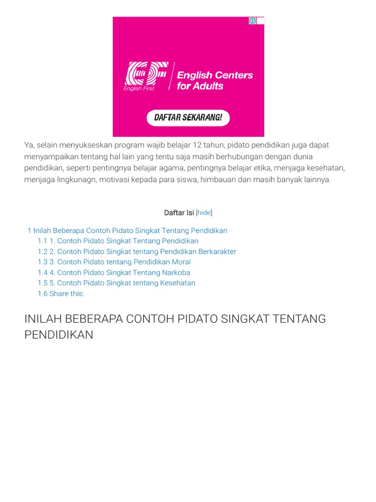 Contoh Pidato Singkat Tentang Pendidikan Kumpulan Ilmu Dan