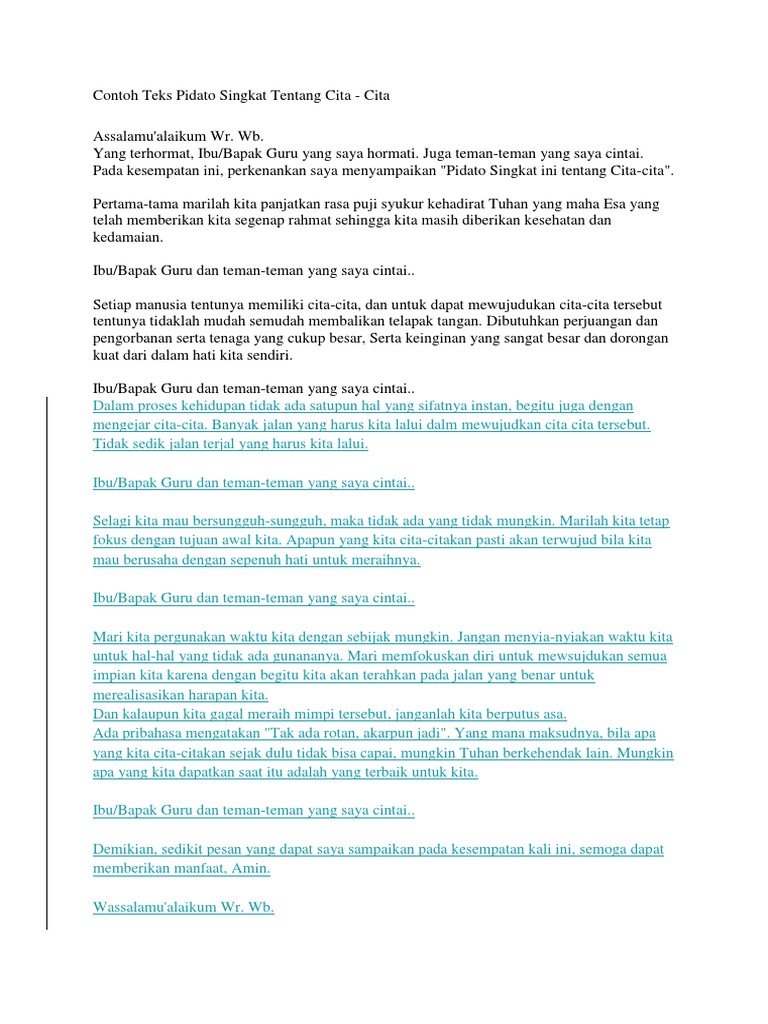 Contoh Teks Pidato Singkat Tentang Cita