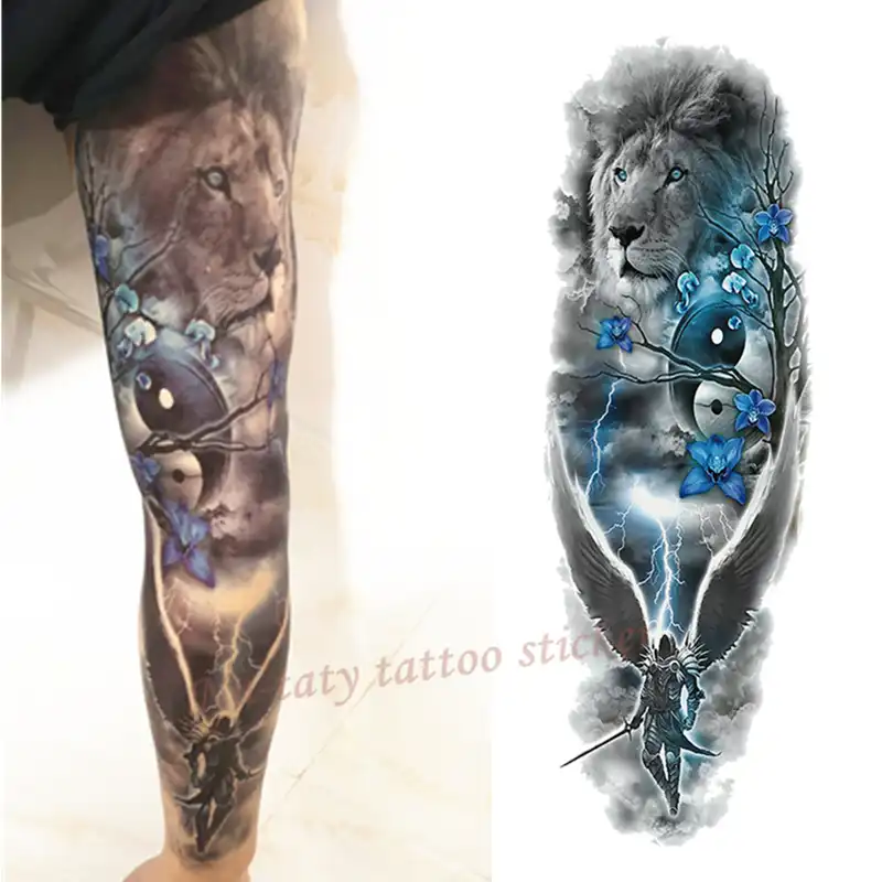 Nu Taty Lion Gossip Large Arm Sleeve Tattoo Waterproof
